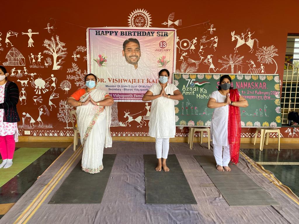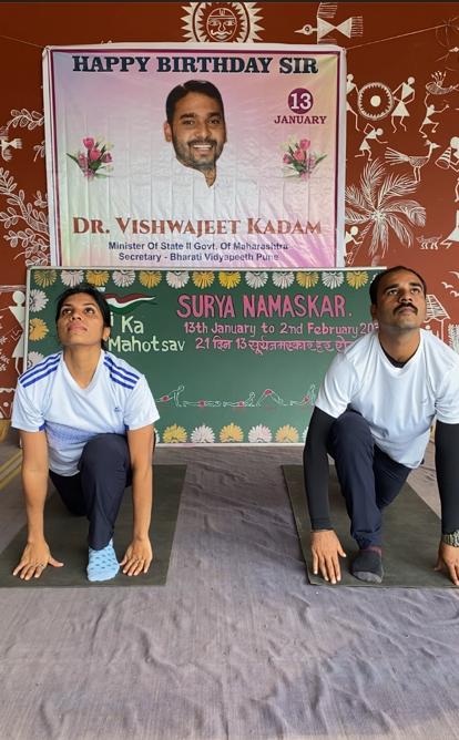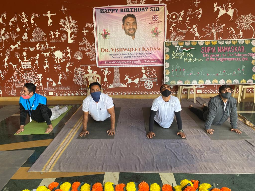 On Dr. Vishwajeet Kadmaji's (Bala Saheb) birthday, 13th January 2022, the activity "Aim to Achieve 75 crores Suryanamaskar" was conducted. “When it comes to eating right and exercising, there is no ‘I’ll start tomorrow.’ Tomorrow is disease.”