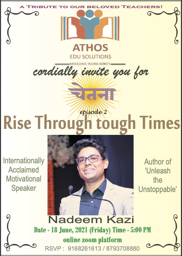 On the onset of new academic session Bvp family has attended Motivational webinar by popular motivational speaker Nadeem Kazi through virtual webinar “Chetana-Rise Through Tough Times” organized by Athos Edsolutions. Mr. Kazi was extremely motivating and instilled freshness in every individual teacher’s mind. He successfully increased everyone’s energy level, showcased views and ideas and boosted a charismatic energy level amongst all by involving them in virtual interaction, queries, music and playful activities.