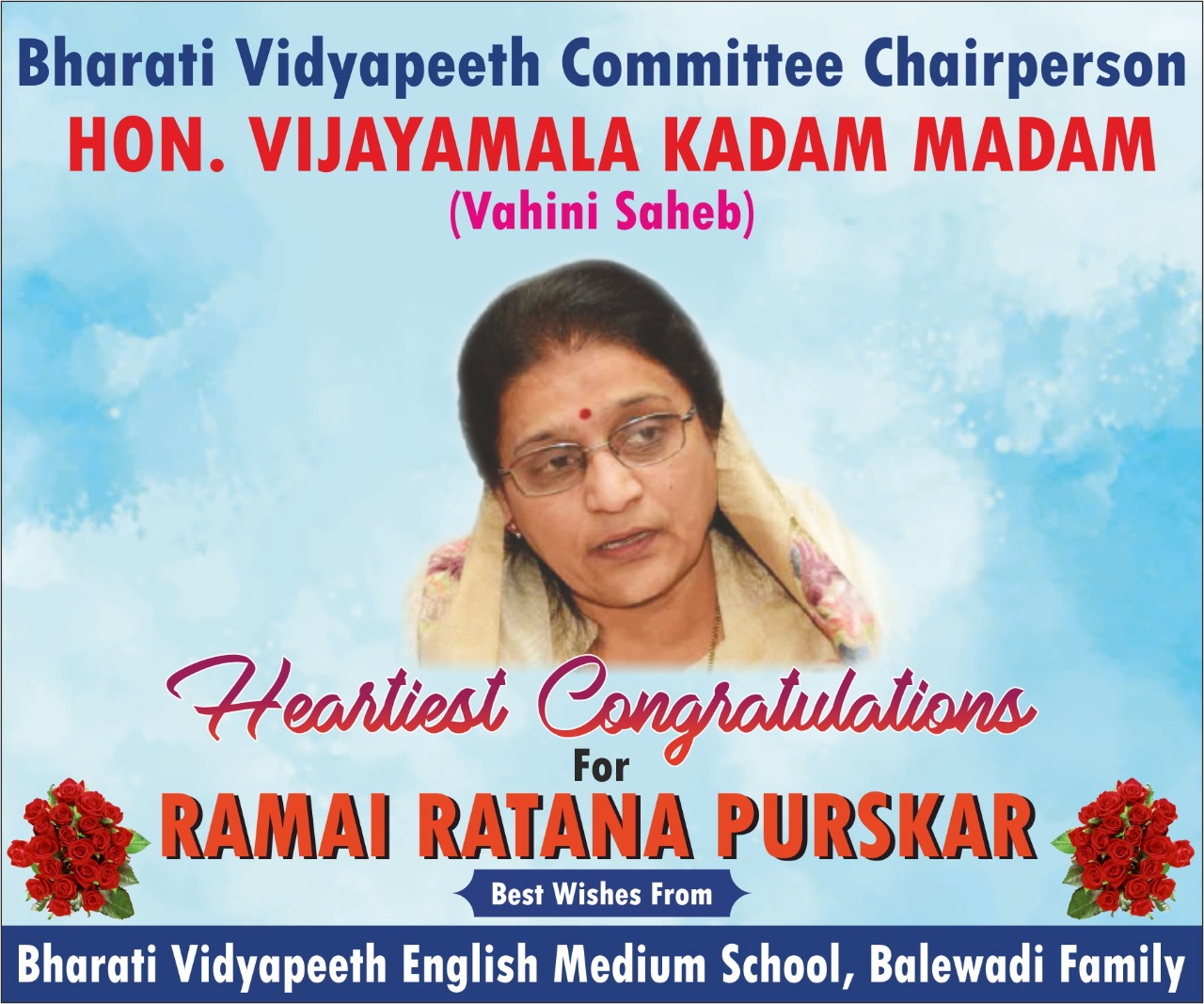 To commemorate the 78th Birth Anniversary of this visionary and legend Dr. Patangrao Kadam ji, On 8th January 2022 Principal Mrs. Bhavana Rai, staffs, teachers and students of Bharati Vidyapeeth English Medium School Balewadi celebrated it with full of enthusiasm. To pay the tribute, Class teachers took children for a virtual tour of all Bharati Vidyapeeth institutions and glimpses of Saheb’s noble deeds and a brief of his entire life and struggles. Children also delivered speeches and recited poems on the glory of Saheb. A Floral tribute was offered to him by Principal, teaching and non-teaching staff, which was followed by, school anthem. Mr. Abhinandan, Mrs. Supriya and Mrs. Leena Pillai delivered speeches in Marathi and English respectively. Mrs. Bhavana Rai addressed the gathering with birthday wishes and motivated everyone by her speech.