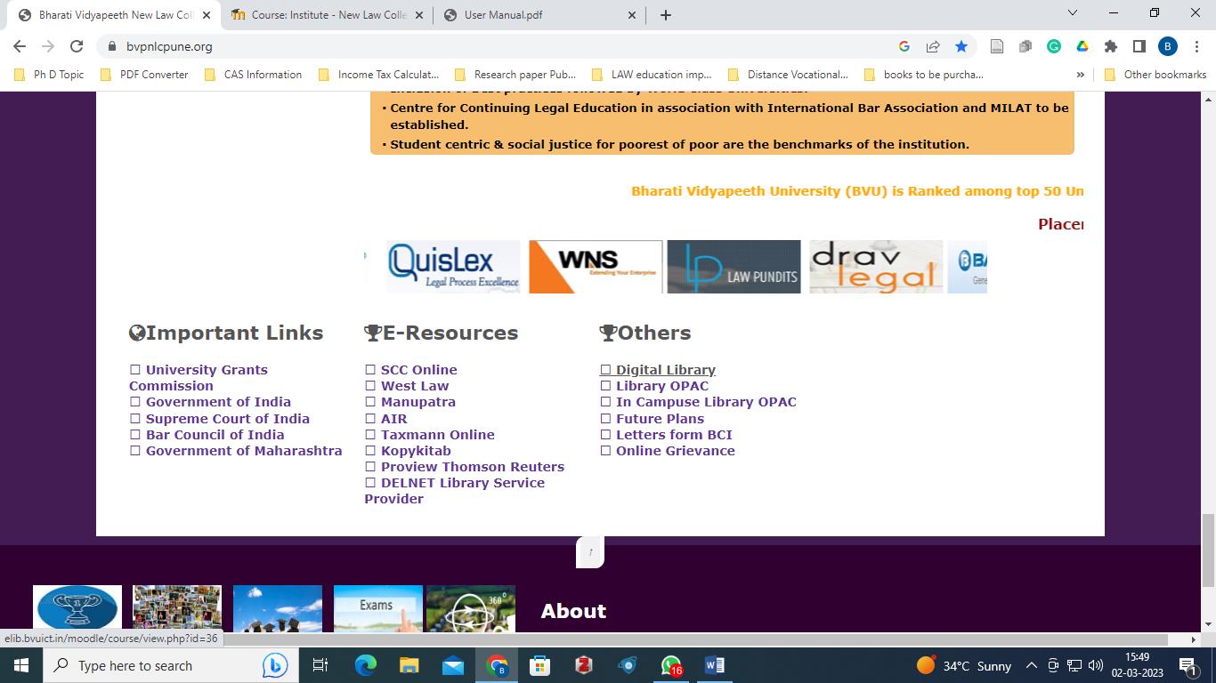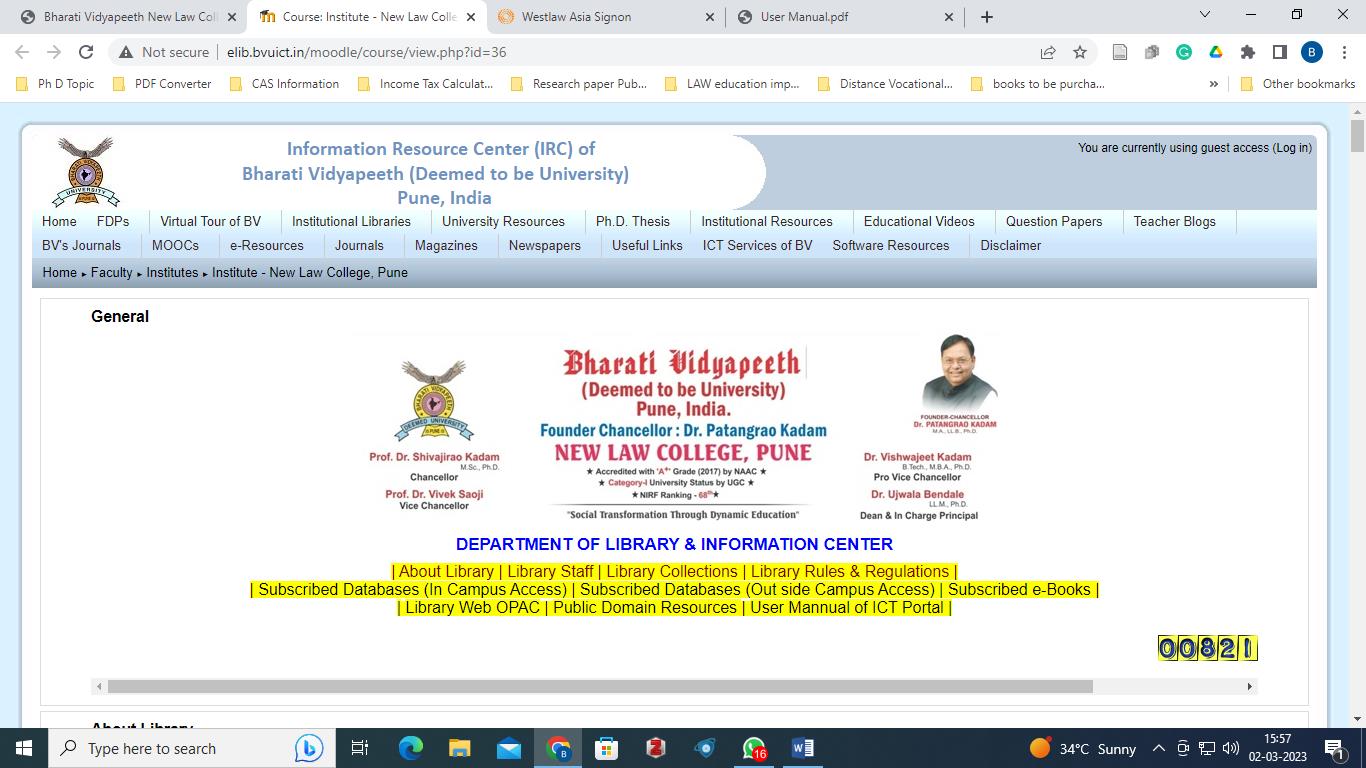Note: - We get access to the online database and e-books through Resources Sharing from Bharati Vidyapeeth’s New Law College, Pune